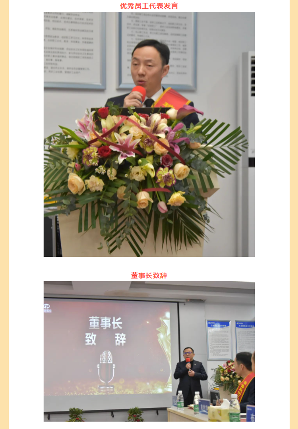 頒獎典禮結(jié)束后,由公司總裁黃立志先生致辭,黃總對全體員工表達(dá)了由衷感謝,感謝各位員工在過去一年的辛勤付出,并對優(yōu)秀員工進行了表揚,希望全體員工向優(yōu)秀員工學(xué)習(xí),最后,黃總向大家致以最誠摯的祝福,宣布晚宴正式開始!