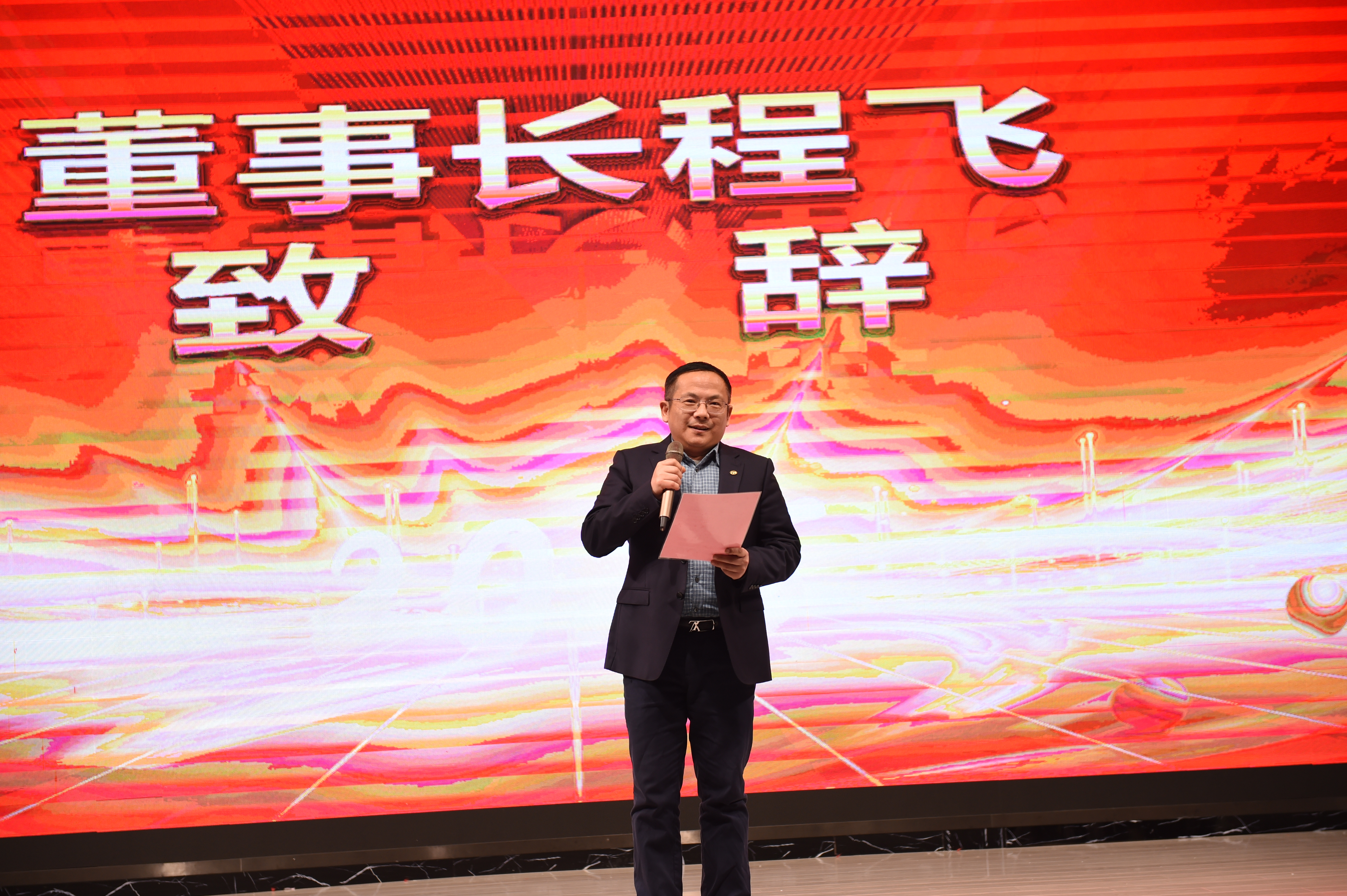 年會及頒獎典禮開始前,由公司董事長程飛先生進行了慷慨激昂的發(fā)言,董事長首先對公司全體員工致以最誠摯的祝福和熱烈的問候,其次對新的一年向大家提出了建設(shè)性意見,希望公司在全體員工的共同努力下,能以精益至臻、與時俱進的面貌迎接新的挑戰(zhàn)。最后,董事長宣布此次年會及頒獎典禮正式開始!